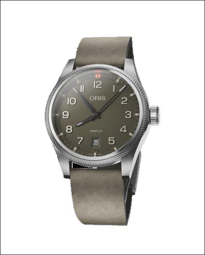 ProPilot Desert Edition Inspired by the desert’s textures and hues, the 41 mm ProPilot Desert Edition features a sand beige dial set in a lightweight carbon-fibre case, paired with a black hybrid rubber-textile strap and Oris’s redesigned ‘LIFT’ clasp for comfort. With subtle red accents and high-contrast hands and numerals.